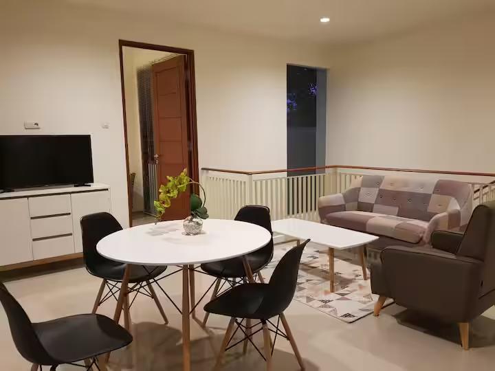 Tulip House menawarkan hunian luas dengan 4 kamar tidur ber-AC dan kasur berkualitas yang menjamin istirahat maksimal bagi seluruh anggota keluarga. Kenyamanan Anda semakin lengkap dengan fasilitas kamar mandi air panas, area pantry, serta ruang tamu dan ruang makan yang komunal. Tetaplah produktif dan terhibur selama menginap berkat akses Wi-Fi gratis dan layanan TV kabel yang tersedia di seluruh area rumah.